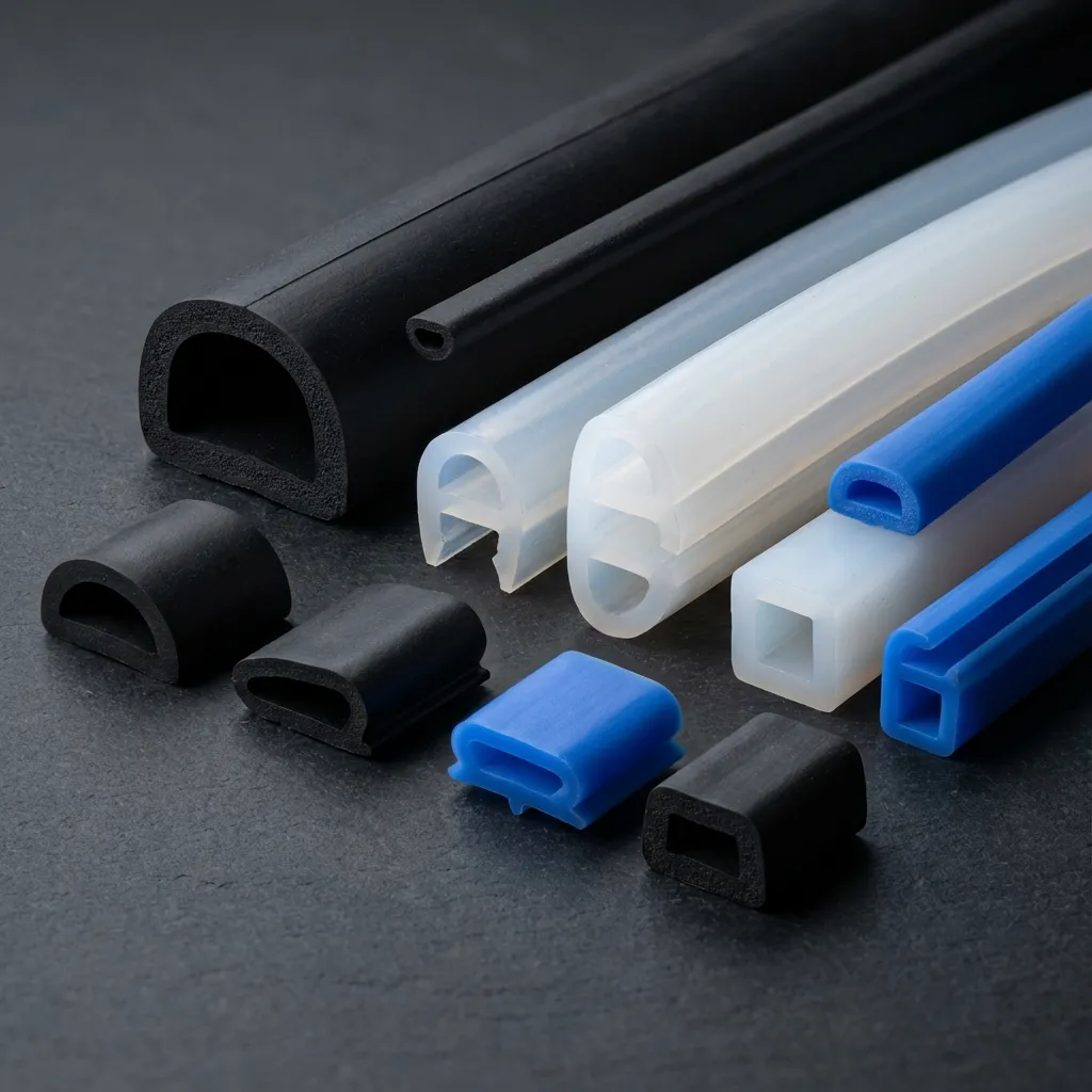 Pryžové profily z materiálů EPDM, NBR, CR, FPM či silikonu (MVQ). Dodáváme téměř jakýkoli profil pro průmyslové těsnění.