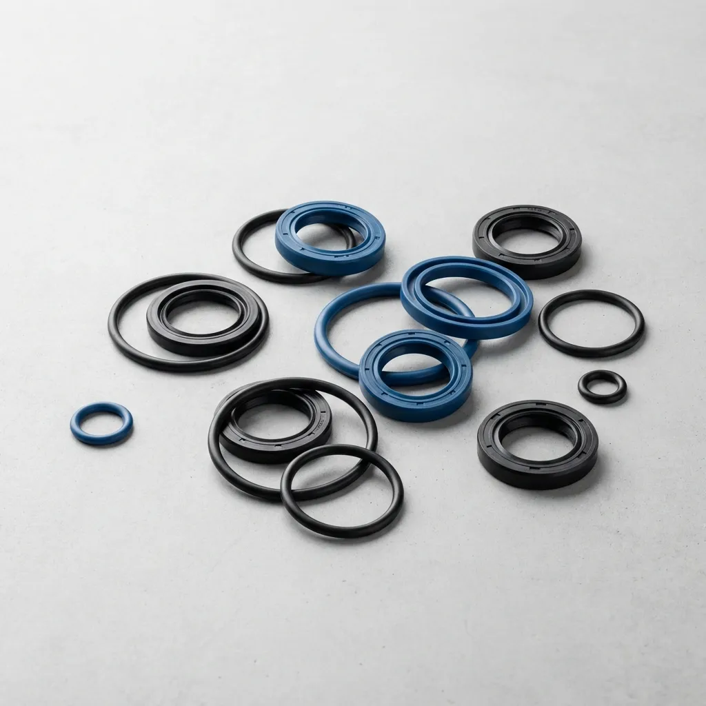 Kompletní sortiment pro rotační části: O-kroužky, opěrné kroužky, manžety a gufera pro spolehlivé utěsnění.