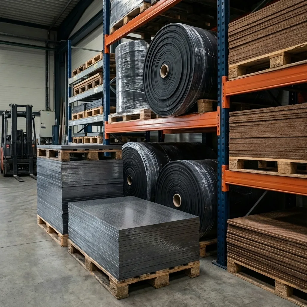 Široký skladový sortiment materiálů pro okamžitou výrobu. Pryže, bezazbestové desky, grafit, plasty a termoizolační materiály.